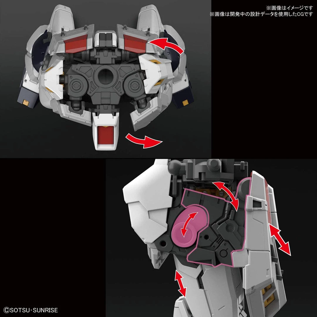 The final mobile suit used by Amuro Ray featured in Char’s Counterattack is available as an RG kit. It includes a multi-link gimmick that allows armor parts to slide simultaneously with the articulation of the leg, as well as armor unfolding gimmick through the body based on a thorough investigation of actual machines, resulting in a product with condensed details unique to RG kits.Â