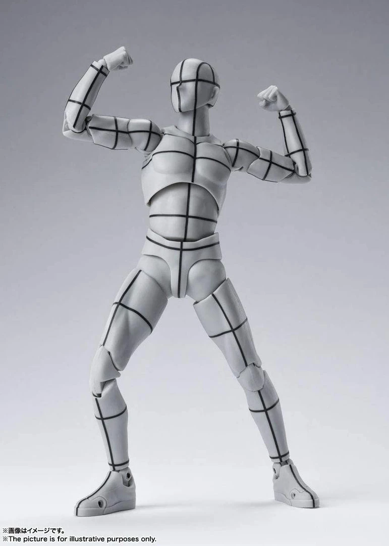 The S.H.Figuarts Body Kun arrives in a new “wireframe” edition! It’s printed with wireframe lines that help artists better capture the curves and three-dimensionality when drawing the figure. It also features limiters in the joints that prevent unnatural poses. Includes a minibook with tips and techniques for artists, with drawings by Pokemon card illustrator Naoki Saito. [Set Contents] Main Body, Four pairs of optional hands, Minibook.