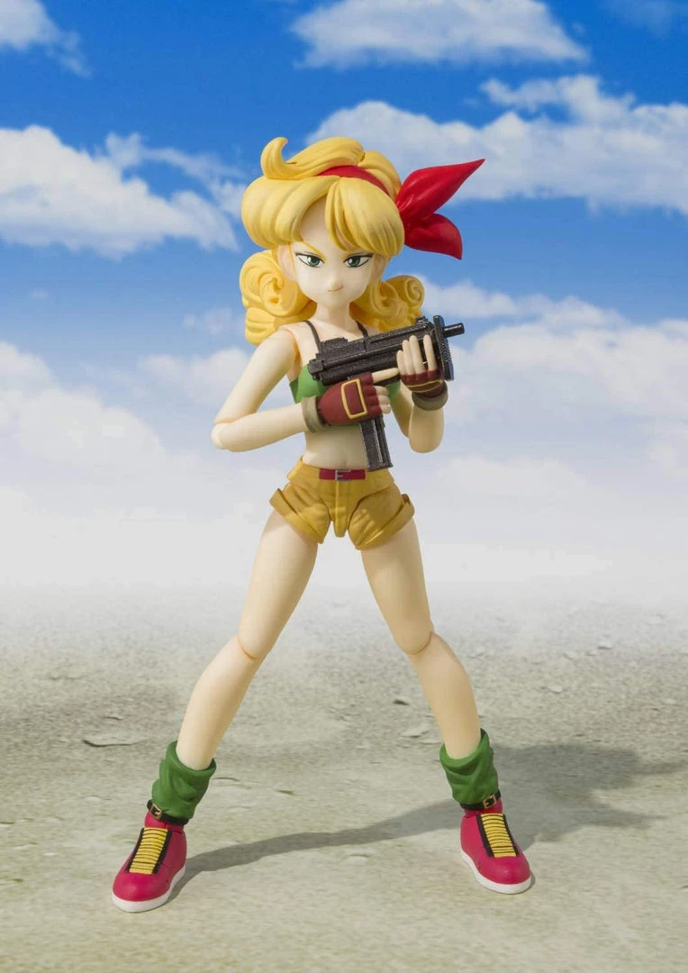Lunch from Dragon Ball joins S.H.Figuarts! Includes parts for displaying with her normal blue hair, and post-sneeze blonde hair. She also comes with a gun and a Shen Long summoning Dragon Ball (one star). [Set Contents] Main Body, Two pairs of optional hands, Four expression parts (two blue hair, two blonde), Gun, Optional hair parts (blonde), Dragon Ball (One Star, Shen Long summoning version).