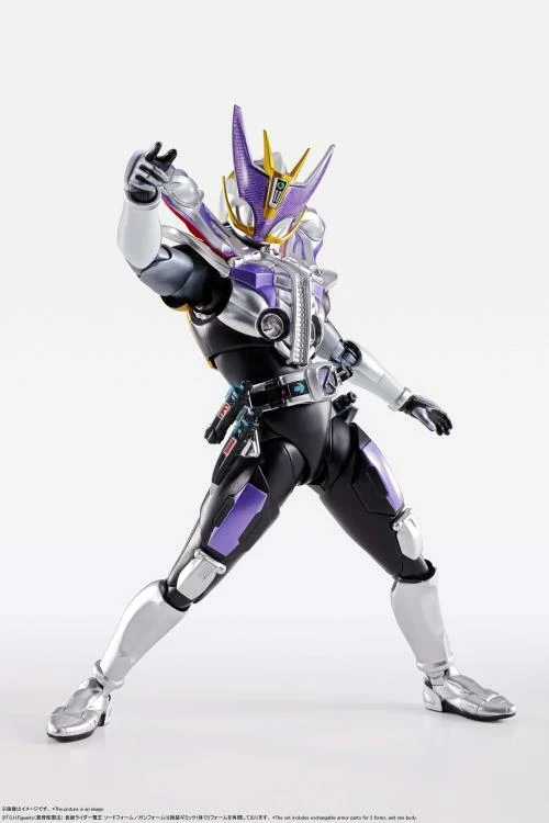 The Shinkoccho Seihou series of ultra-detailed action figures welcomes the new addition of Kamen Rider Den-O (Sword and Gun Form). He is rendered in faithful detail, right from his uniquely shaped eyes down to the features of his distinctive costume. The customizable figure features optional parts for re-creating his Sword form and Gun form, so that he may change from his initial appearance to his climactic final one!