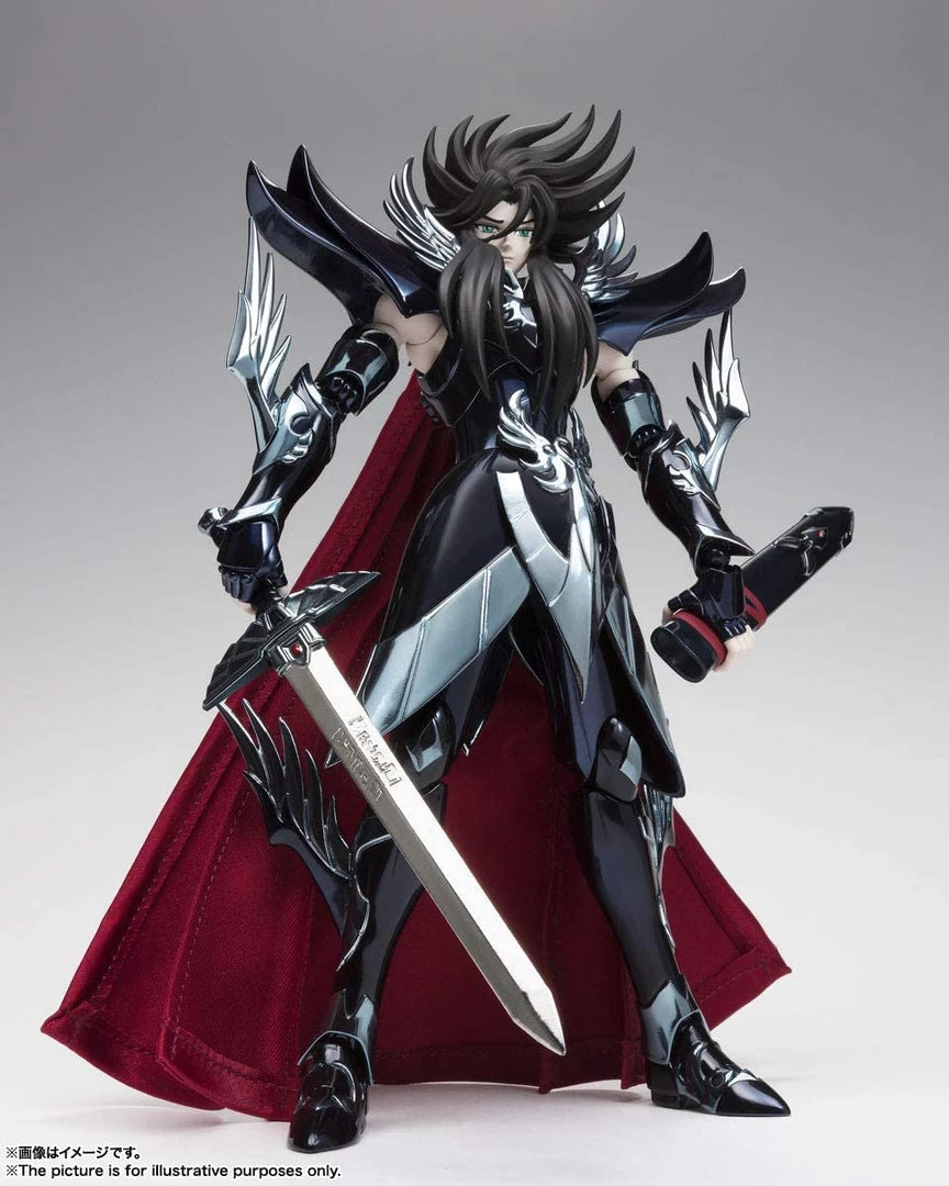 This set allows you to display Hades wearing his mask (not seen in the anime), along with his dramatic Red Sword with a working scabbard. The cape is made of cloth and is embedded with wires, allowing for flexible and dramatic poses. The armor can also be arranged into Object mode.