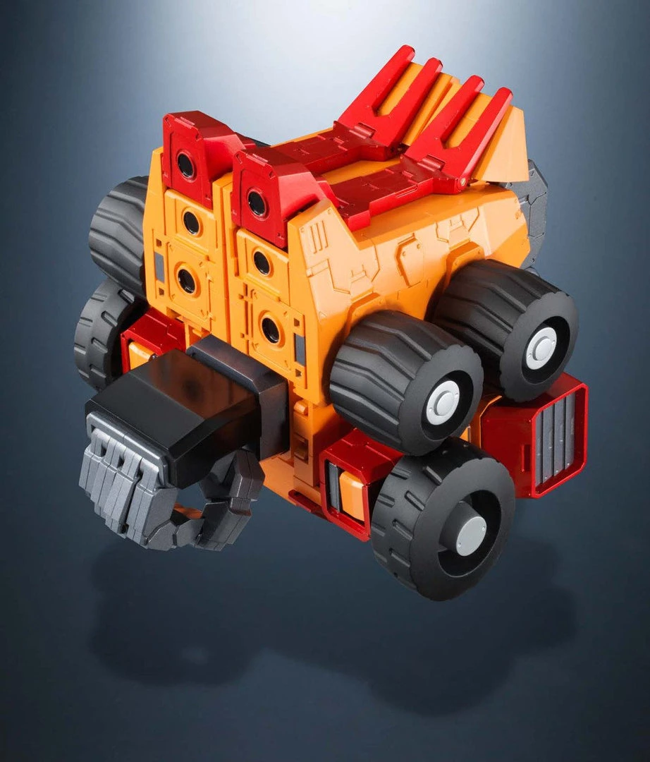 From the Soul of Chogokin line comes Goldymarg, the impressive Vehicle Machine exclusively created to transport GaoGaiGar’s mighty Goldion Hammer. Transform the three seminal configurations from the anime: normal, Goldy Tank, and separate Marg Hand and Goldion Hammer arrangements. Use the included nail accessory to recreate scenes with the Zonder Core. Entire set includes Goldymarg, Marg Hand interchangeable piece, two special interchangeable hand parts for GaoGaiGar (*GaoGaiGar sold separately), Hammer Hell nail, short Hammer Hell nail, 2 Hammer Hell nail tips, Zonder Core and display base.