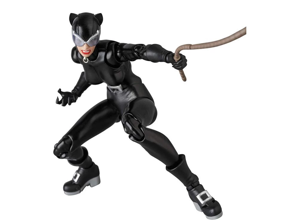 From MEDICOM Toy. This stellar 6″ rendition ofย Catwomanย from the classic DC Comics taleย Batman: Hushย comes with three alternate heads, alternate wrists, clear goggles, dedicated joints for unique poses, whip parts and a movable figure stand.