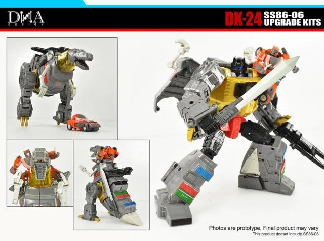 DK-24 Studio Series Upgrade Kit has everything you need to upgrade your Transformers Studio Series 86-06 Grimlock and Wheelie figures (figures sold separately).  Included are a replacement Wheelie figure, 3 replacement heads, a sword, and much more. The extra parts do not interfere with the transformation, as such there is no need to dismantle the figure.Â