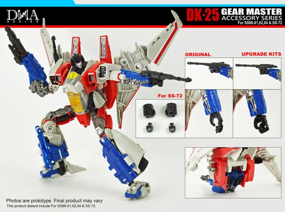 The DK-25 Gear Master Accessory Series Upgrade Kit contains a selection of new and improved accessories and attachments that are compatible with Studio Series 86-01, 02, 04 and Studio Series 72.