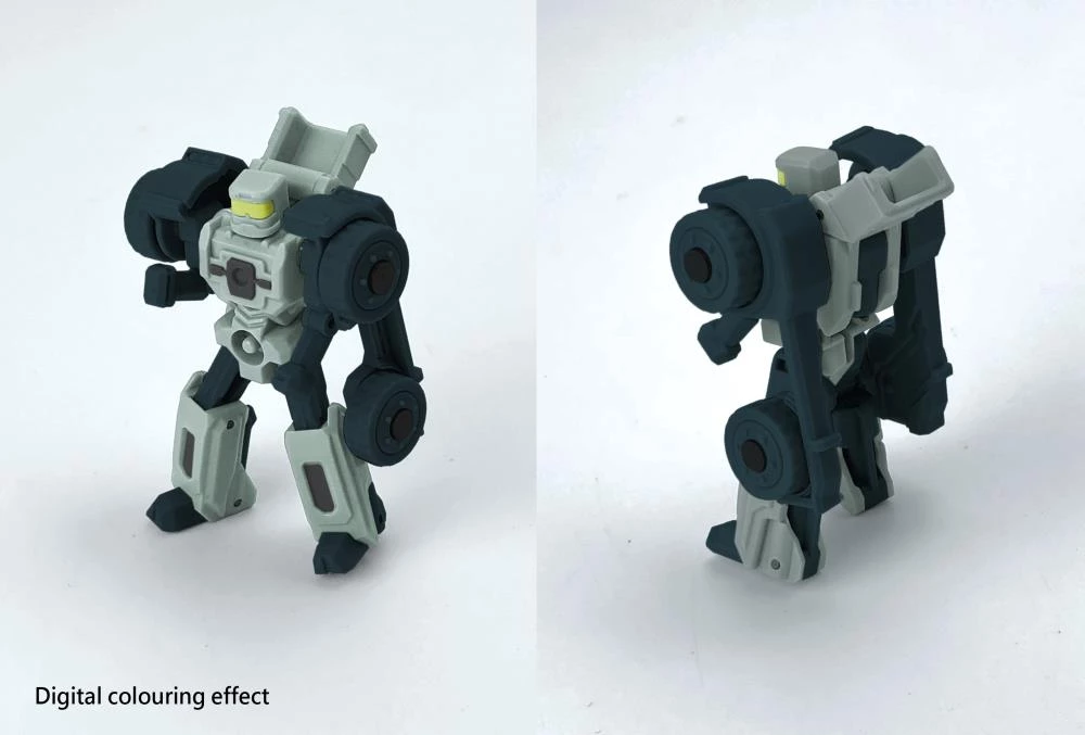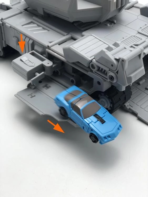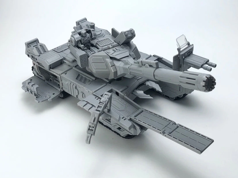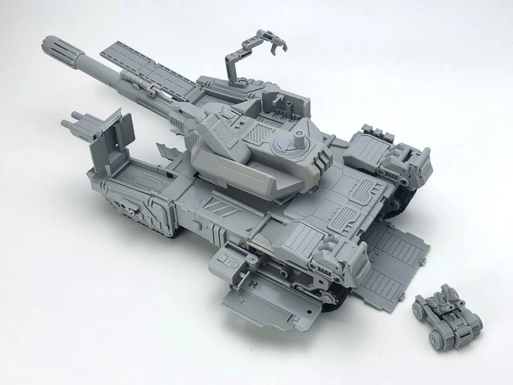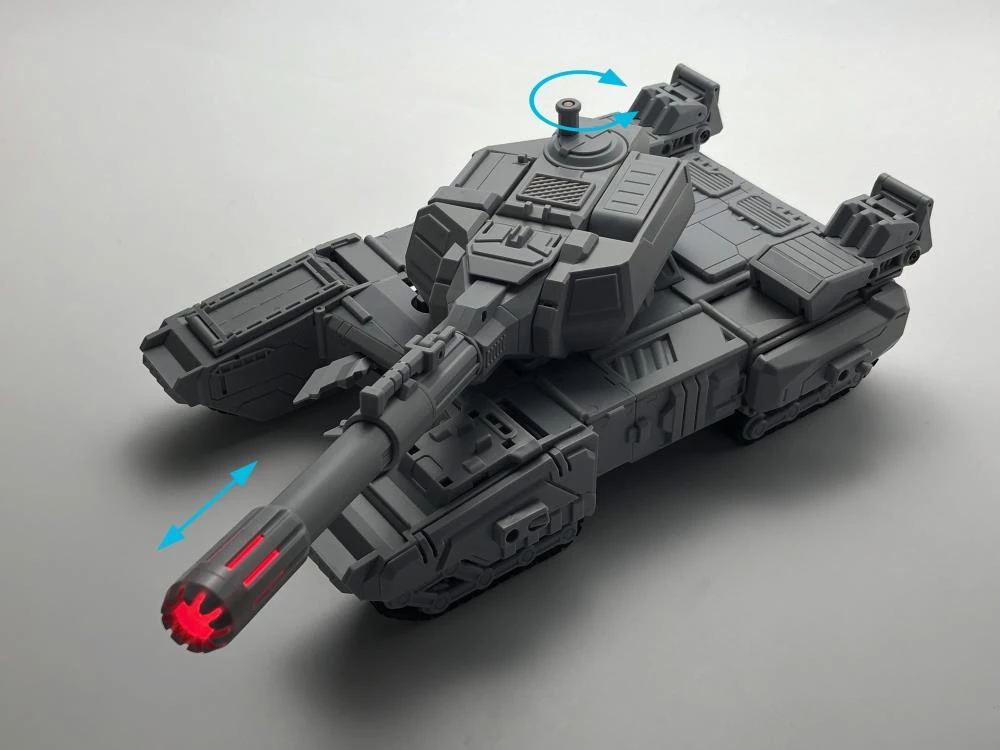This transforming figure converts from robot mode to a tank and back again. Meg-Tyranno comes armed with a blaster, comes with a mini robot driver.