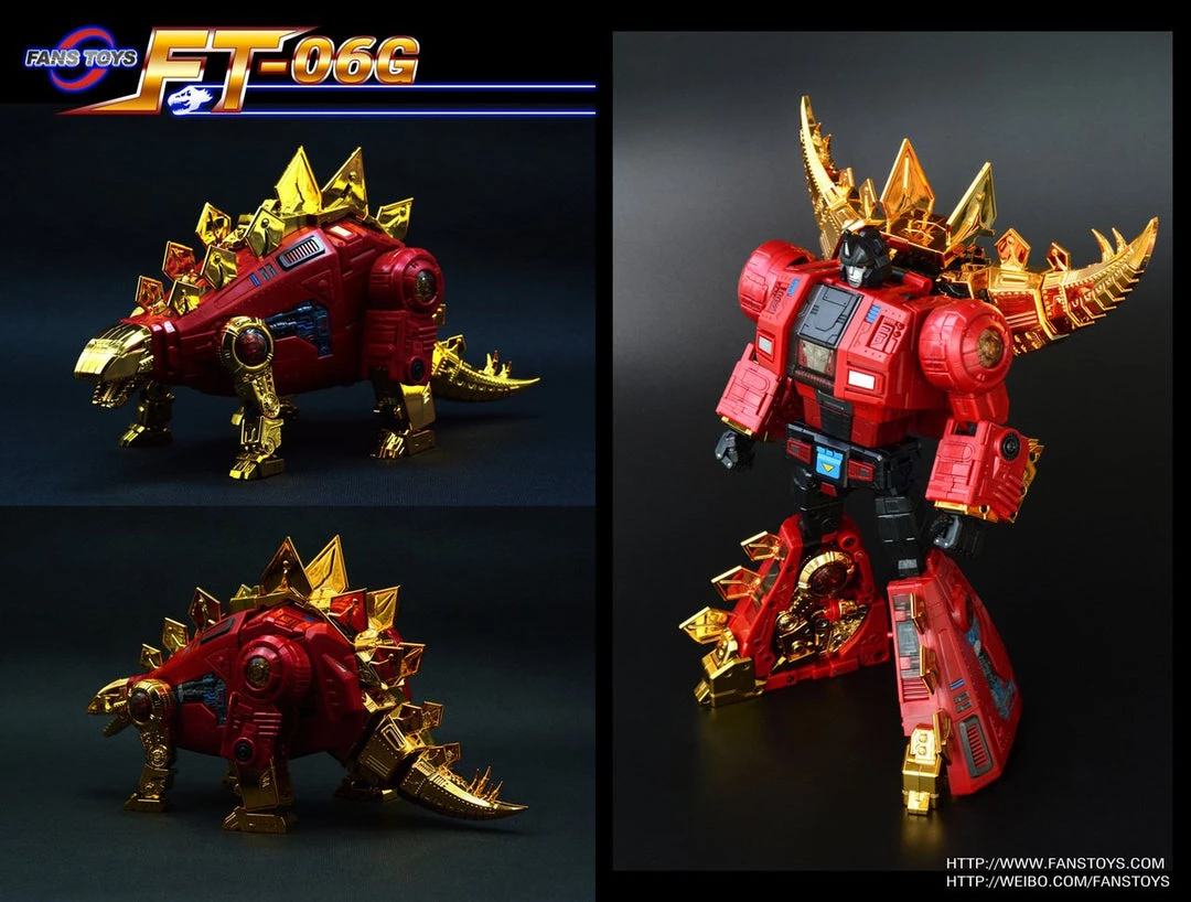Fans Toys has added the third figure to it’s line of Iron Dibots, a series or robots that convert to Dinosaurs. The third Dinobot like figure from Fans Toys is FT-06 Sever. Â This awesome robot transforms from a Stegosaurus to a robot and back. Â This limited edition of 500 pcs, FT06G is a special red colored repaint of the popular toy. Â