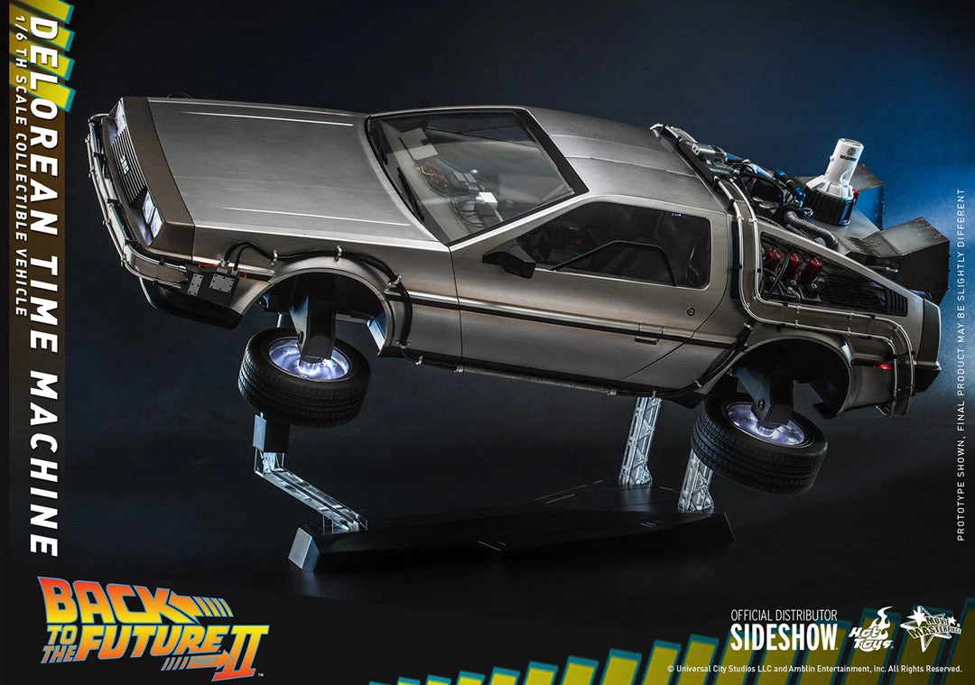 Inspired by the classic blockbuster, Back to the Future II, Sideshow and Hot Toys are excited to present the iconic DeLorean Time Machine Sixth Scale Collectible Figure Accessory with foldable wheels for hover mode.