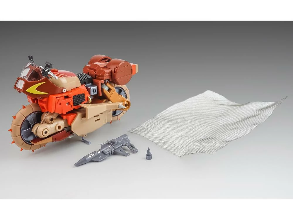 Joining the E.A.V.I. Metal Phase figure series is new robot CASTOFF! Castoff has a metallic paint, stands 8 inches in robot mode, and can transform into a motorcycle. This articulated figure is made of ABS plastic, featuring rubber tire spikes and die-cast feet and thighs.