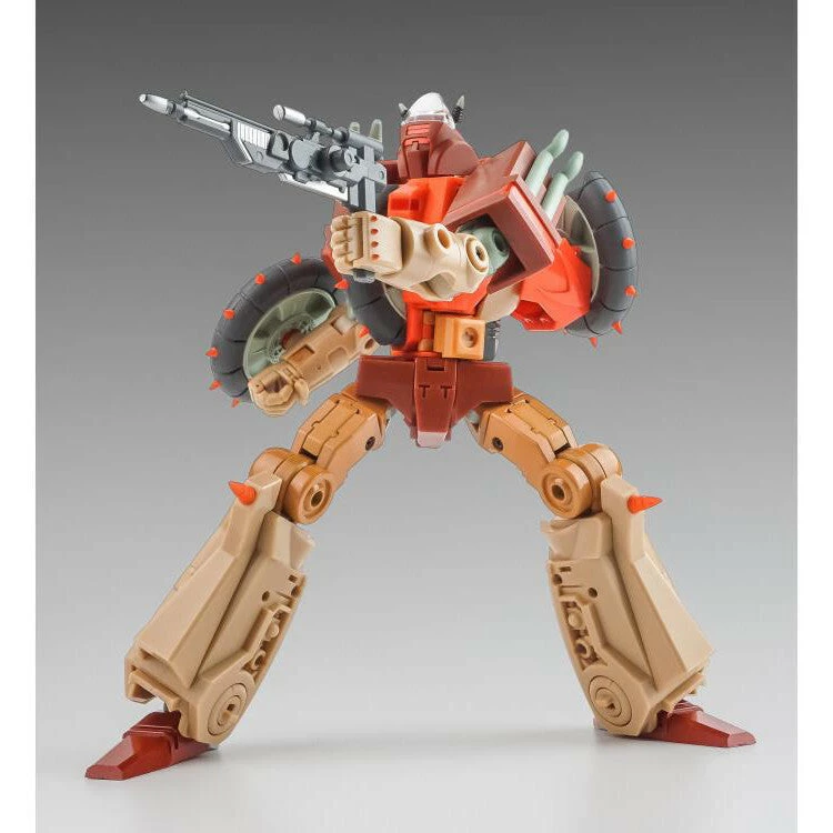 The E.A.V.I. Metal Phase figure series welcomes DREGS to the family! Dregs has a metallic paint finish, stands 8 inches in robot mode, and can transform into a motorcycle. This articulated figure is made of ABS plastic, featuring rubber tire spikes, plus die-cast feet and thighs.