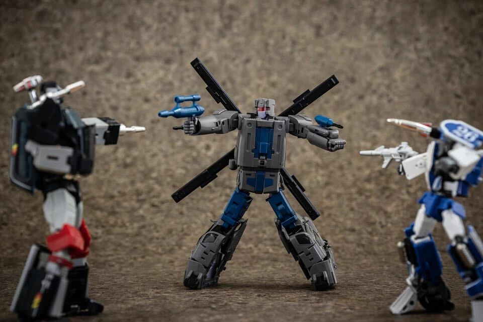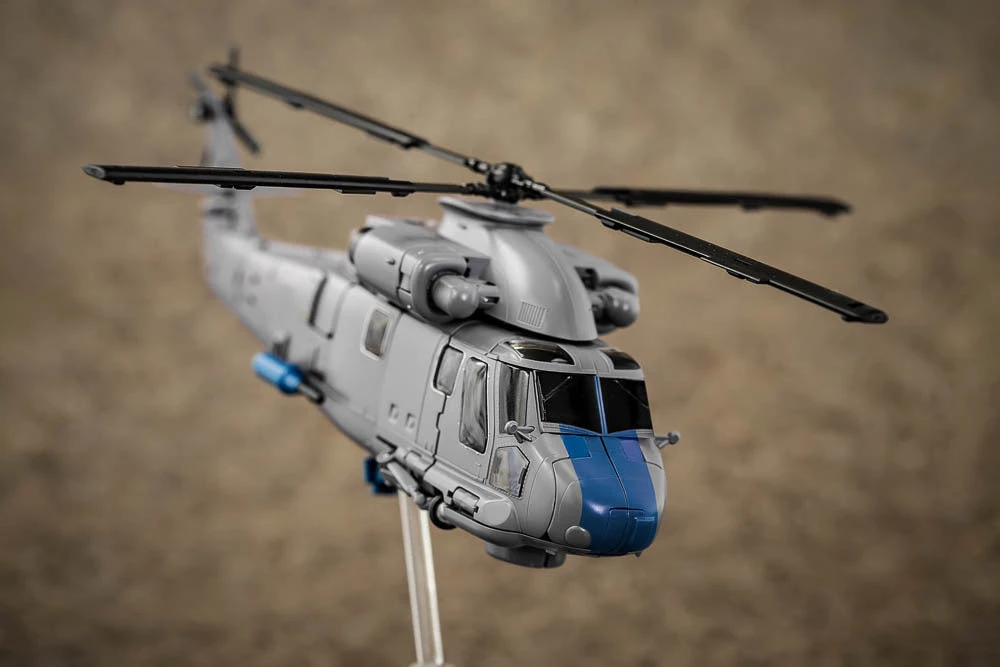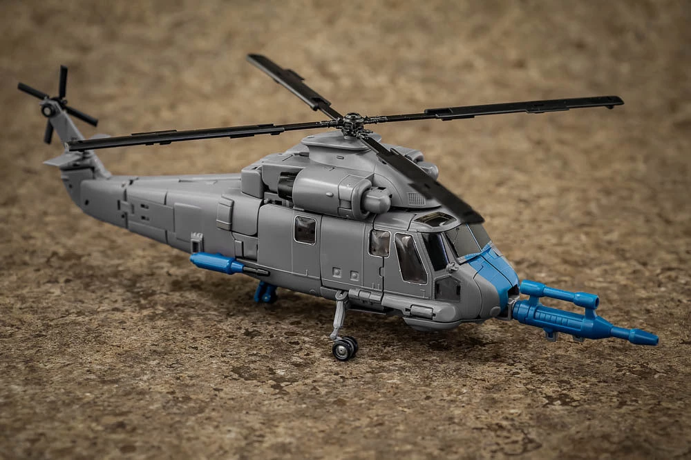 Impetus is start of the ALL BUILT IN series, he can convert modes between Bot to the Sea Sprite Helicopter to the left arm of Assaults using his own components to form a fully functional elbow bend, wrist rotation and articulated combiner hand. He stands at 7.5″ in Bot mode with excellent poseability that matches the entire Perfection Series line.
