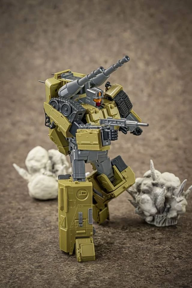 Ocular Max proudly presents ALL BUILT IN, the ultimate experience for the collectors who demand the ULTIMATE combiner! Figures with the ALL BUILT IN title will need absolutely NO additional parts forming while sculpt, articulation and handling are uncompromised.The last arrival of the Assaultus team, Probus, comes as the fifth release of the ALL BUILT IN series, he can convert modes between Bot to German Leopard 1 A1 to the left leg of Assaults using his own components to form fully functional knee bend, ankle rocker and foot tilt. The tank mode features good playabilities such as open hatch doors, attachable machine gun and rear mounted anti-aircraft twin sonic cannons. He stands at 9″ in Bot mode with excellent poseability that matches the entire Perfection Series line. Figure includes: handgun x1 twin sonic cannons Manual, Biocard New smirk face for PS-15 FraudoÂ
