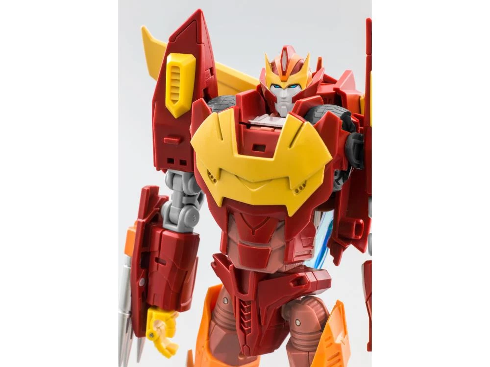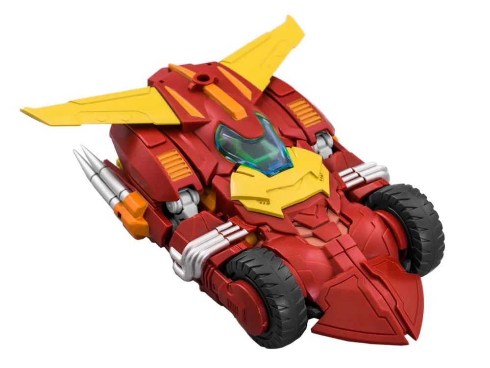 Reformatted R-27 Calidus stands just over 7 inches (18cm) tall and transforms into a racing car. Calidus’s energy bow can be mounted to his backpack in robot mode, and it forms the car’s fender in racing car mode.