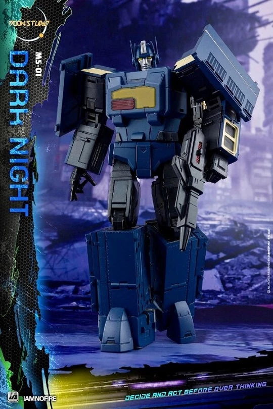 From Moon Studios comes a series of robot figures which transform from robots into different types of trains. The MSO1 Dark Knight figure transforms from a robot into a train. Collect transforming figures MSO1 through MSO6 and you can combine them to form Radiatron!Â