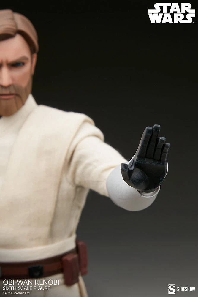 The Obi-Wan Kenobi Sixth Scale Figure captures the Jedi Knight’s distinct design from the fan-favorite animated series The Clone Wars, as he works to keep the galactic peace alongside the Jedi Order. This articulated figure features a stylized headsculpt and a carefully tailored fabric costume consisting of a Jedi robe, tunic, undershirt, tabards, pants, a sash, a belt with sculpted accessories, and sculpted boots and gauntlets to create his signature uniformed look.