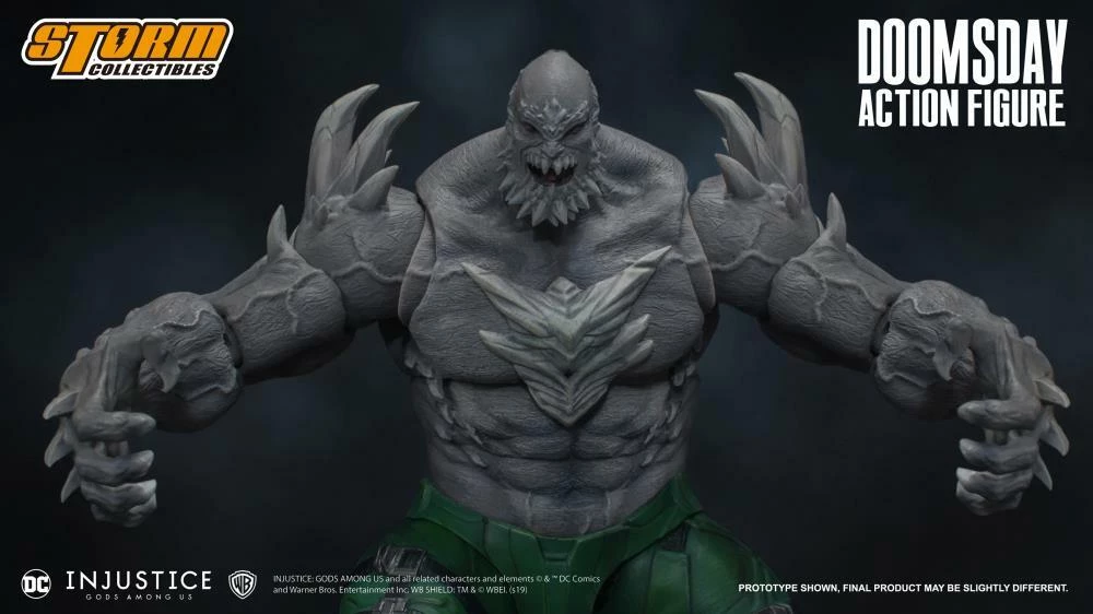 From Injustice: Gods Among Us, Storm Collectible presents Doomsday, a rampaging, seemingly mindless, murdering monster who killed Superman. Doomsday stands over 11 inches tall, features a high level of articulation, and includes alternate head and hand options.