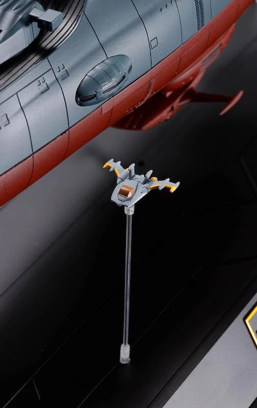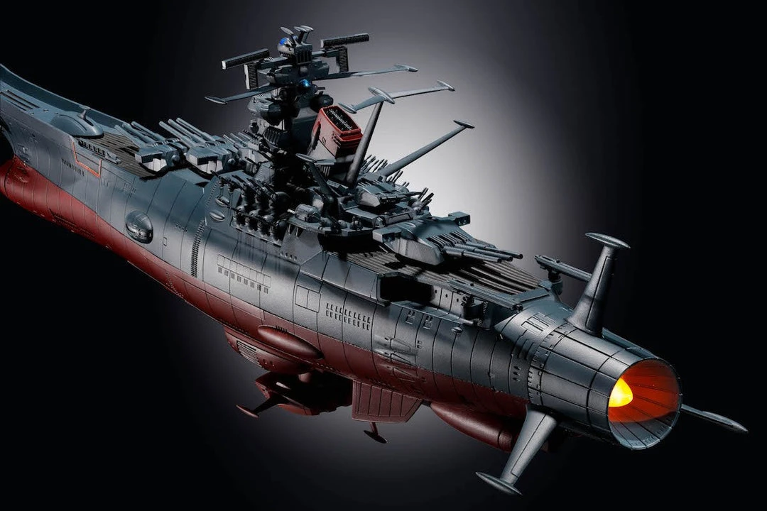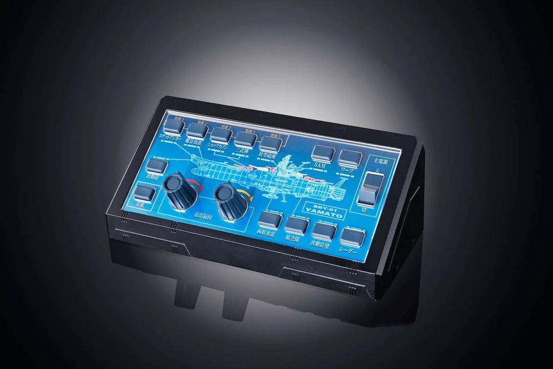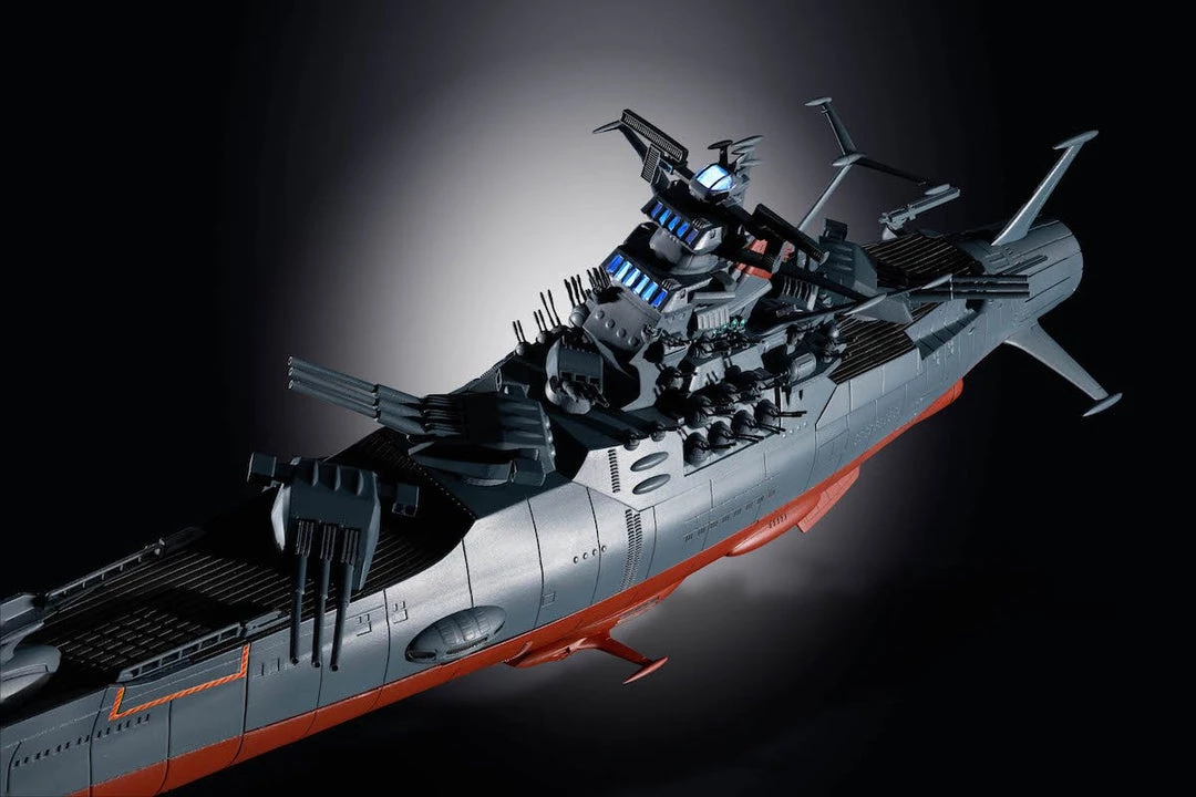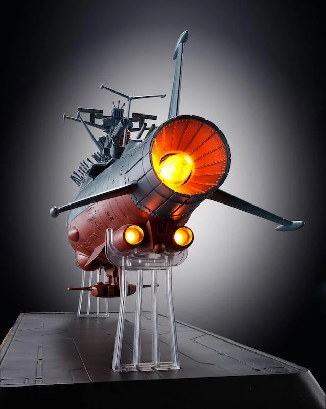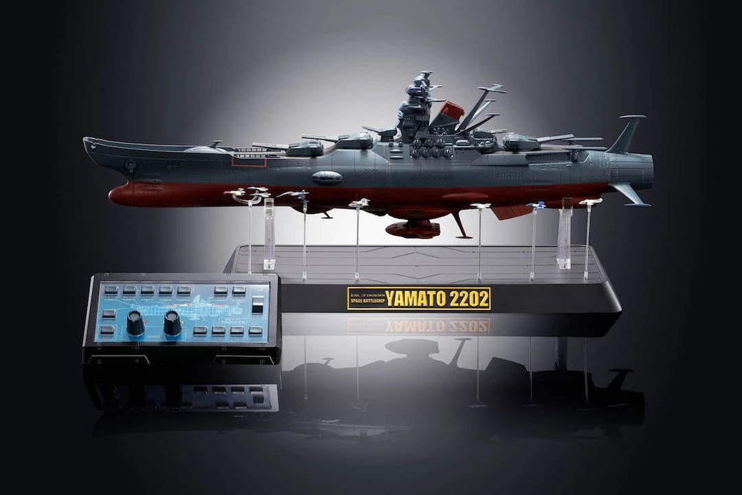 The massive namesake of “Space Battleship Yamato 2202” joins the SOUL OF CHOGOKIN series! It’s packed with features, including light-up Wave Motion Gun, engine, and bridge, plus motorized turrets. A remote control lets you play key lines recorded by the voice actors for Susumu Kodai and Yuki Mori, plus a variety of other effects and music. The set includes the Yamato itself, a remote control, eight miniature fighters (Cosmo Zero, Tiger I, Tiger II (x2), Tsvarke, Cosmo Seagull, and “Ki” type search craft), detachable wings, rocket anchors (L/R), display stand, display stand arm set, and test batteries.Â