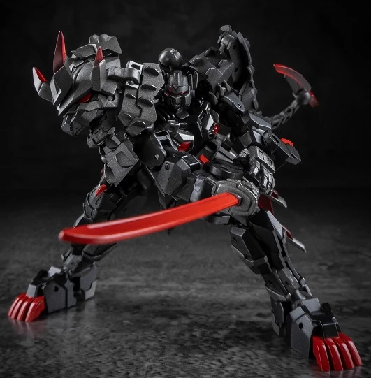 Iron Factory’s IF-EX45K Kagami Shishimaru Nemesis is made of durable plastic and features a high level of articulation and is highly posable. This is a special black recolor of the EX45. The figure is built to a high standard and meticulously precision engineered to the Iron Factory standards. IF-EX45K Kagami Shishimaru Nemesis is a legends scale figure—standing 3.8-inches tall in his robot mode and can quickly transform between a Lion and his robot form.