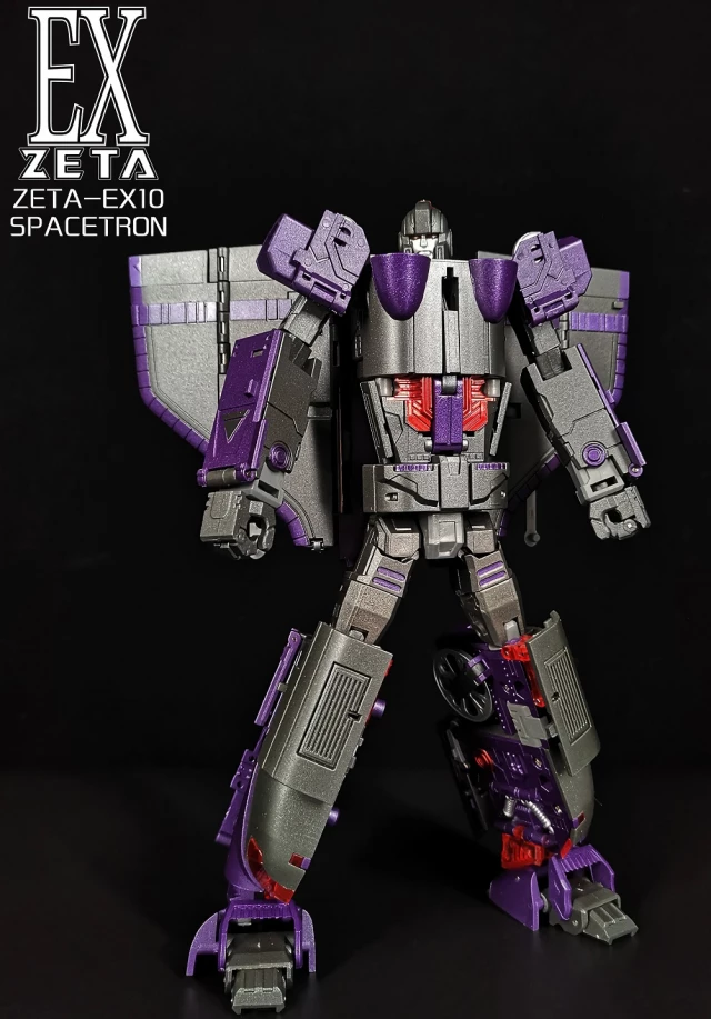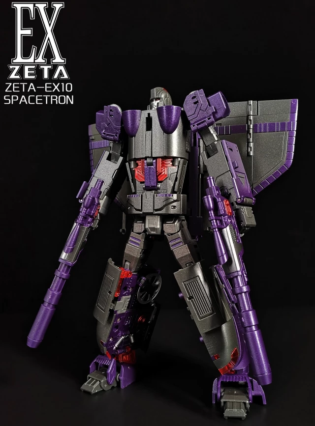 The Zeta EX10 is a metallic colored masterpiece Scale scaled that converts from a space shuttle to train to robot and back. Spacetron stands approx 8.5 inches tall in robot mode. Comes with weapons and accessories.Â