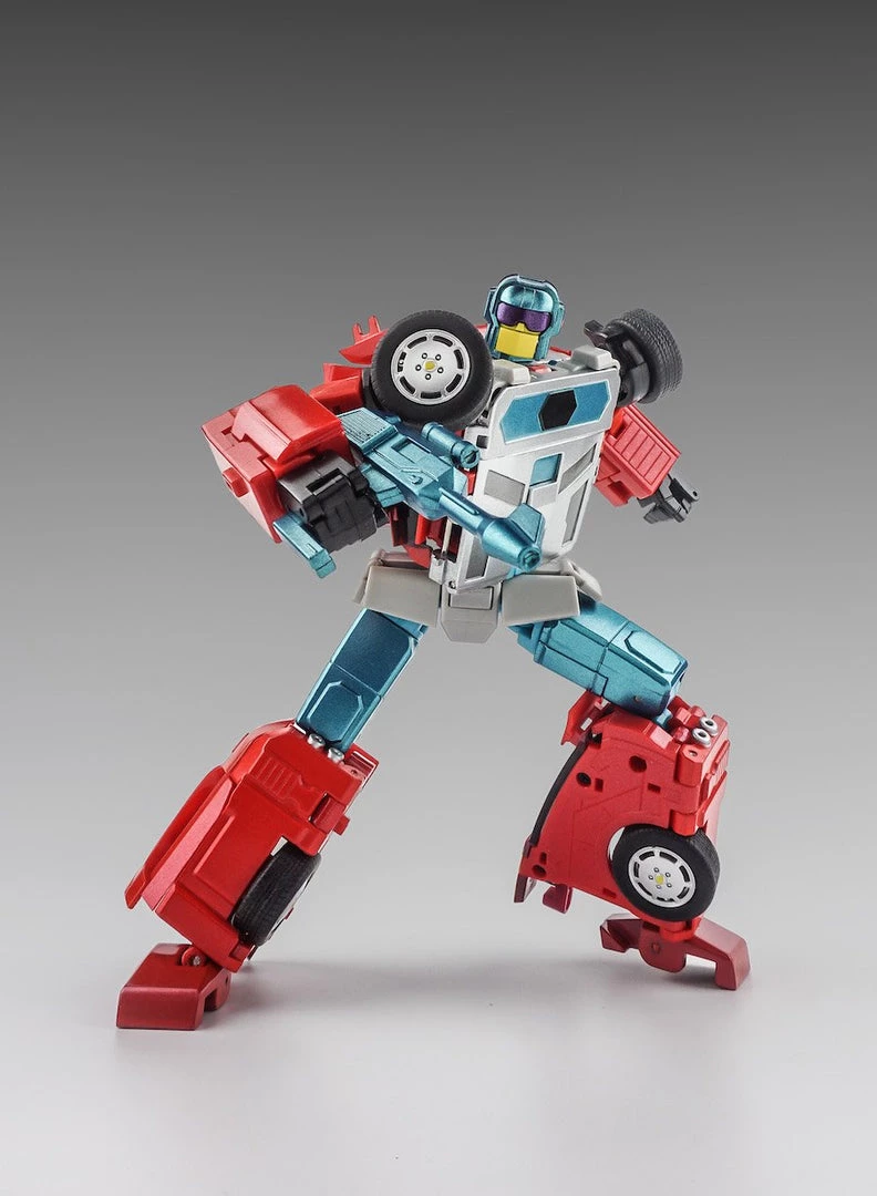 Exclusive G2 recolor of MX-15 Deathwish! The figure measures approx 16 cm / 6 inches tall.  The figure transforms from a sports car to robot and back.  The figure is made of die-cast metal and plastic. Special collectible box with G2 themed design.   Features : -Gun*1 -Instruction manual *1 -Bio Card*1 -Rubber Tyres -Clear car window -Ratchet joints -Metallic paintings on car and robot -Chest, thighs, feet die cast Â